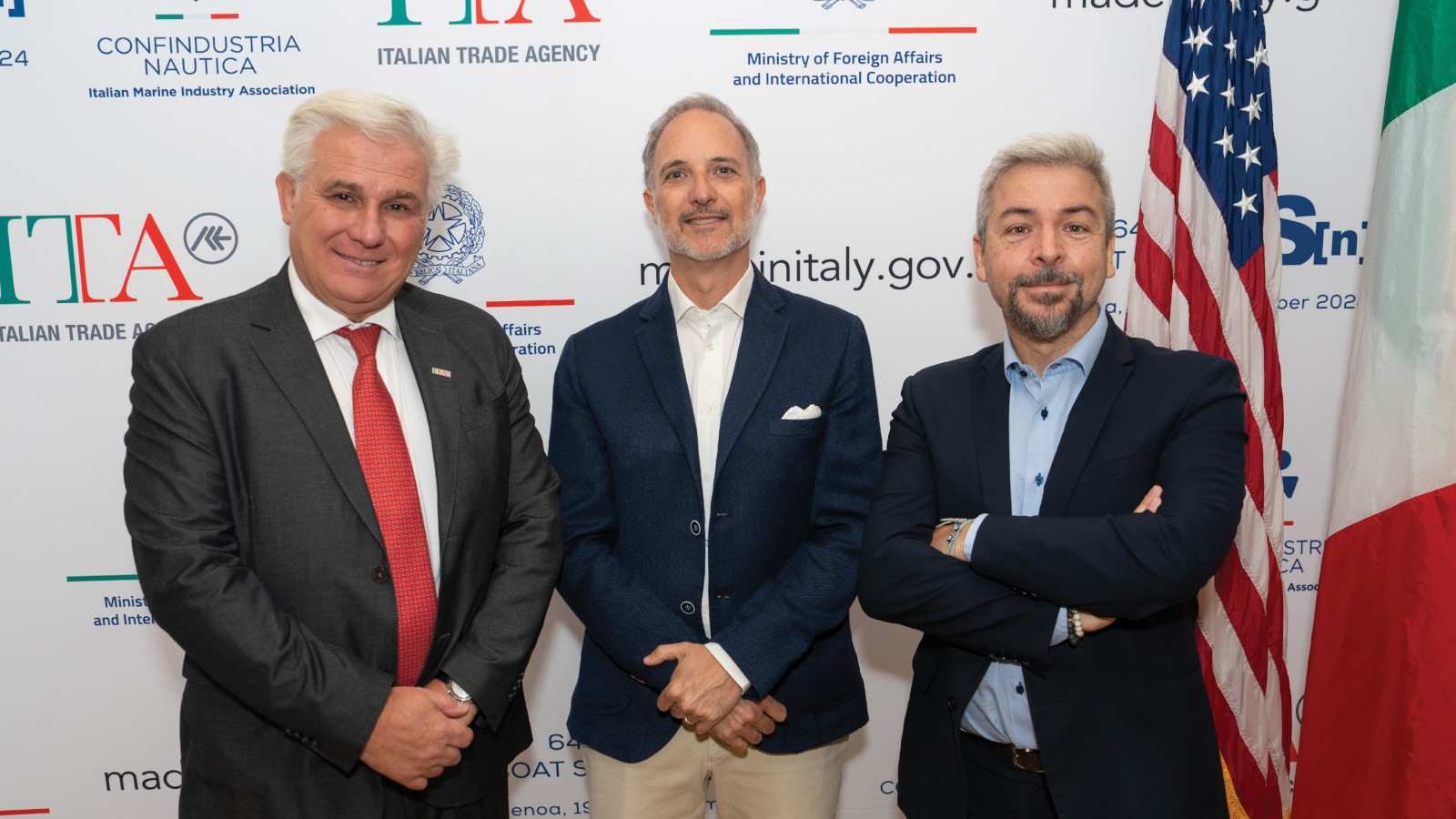 In the photo: Carlo Angelo Bocchi, Direttore Ufficio ICE di Miami – Stefano Pagani Isnardi, Direttore dell’Ufficio Studi di Confindustria Nautica – Paolo Trevisan – Senior Vice President Design Pininfarina America